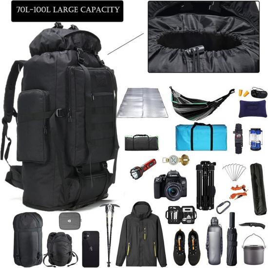 Dieser Rucksack besteht aus strapazierfähigem 900D Oxford-Gewebe, das schweren Lasten standhält. Mit einem Fassungsvermögen von 70 l bietet er ausreichend Platz für Ihre gesamte Ausrüstung und alle wichtigen Dinge.