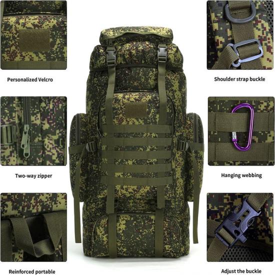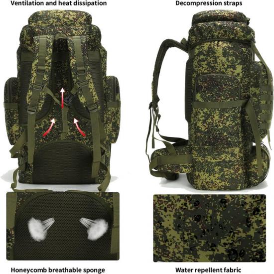 Der Militärrucksack ist robust, leicht, langlebig und wasserdicht und verfügt über reißfeste Eigenschaften, sodass er sich perfekt für jedes Abenteuer eignet. Der Rucksack besteht aus hochwertigen Materialien, die rauen Umgebungen und starker Beanspruchung standhalten.