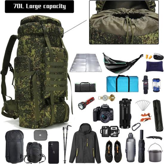 Erschwingliche Preise Gute Qualität 70L Wasserdichter Rucksack KratzfestDieser Rucksack besteht aus hochwertigem 900D Oxford-Gewebe, das langlebig ist und schweren Lasten standhält. Mit ergonomischen Riemen und einer gepolsterten Rückenplatte sorgt er auch beim Tragen schwerer Lasten für maximalen Komfort.