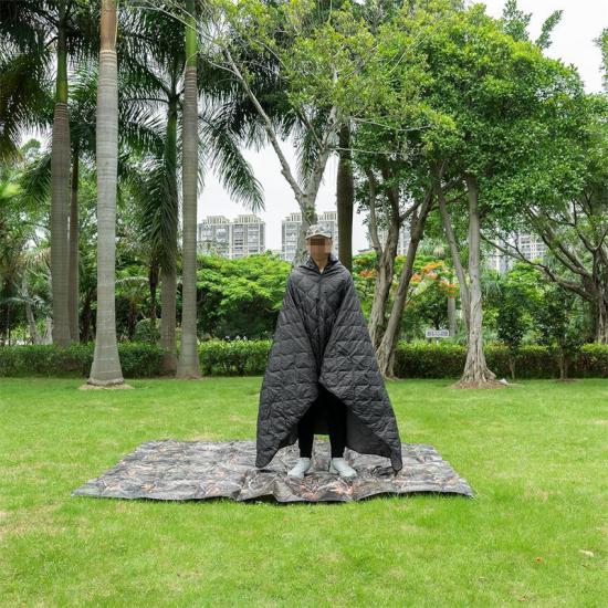 MATERIAL: Die Tarndecke besteht aus 210T Ripstop-Material und ist mit besprühter Baumwolle gefüllt, die gute wasserdichte und wärmende Eigenschaften aufweist, sodass kein Wasser in die Poncho-Fachdecke eindringt und Sie warm und gemütlich bleiben.
