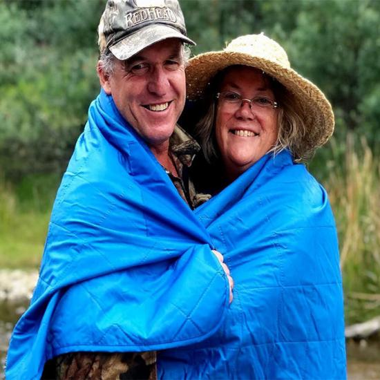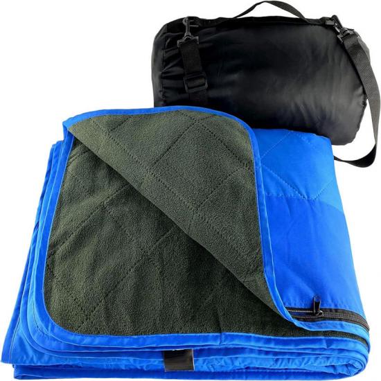 A: Die wasserdichte blaue Decke misst 82 x 55 Zoll und ist für zwei Personen geeignet.