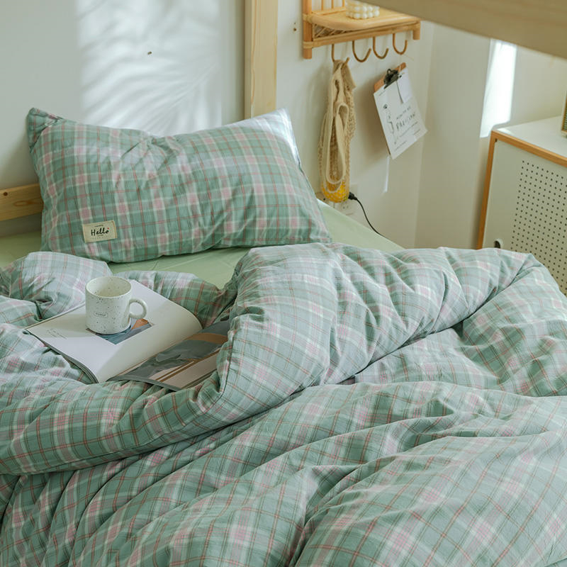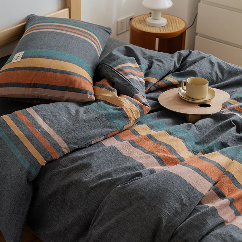 Verfügbare Bettwäsche-Sets aus gewaschener Baumwolle, weich und atmungsaktiv,● 3 PCS: 1 Kissenbezug und ein Bettlaken und ein Sommerdecke ,