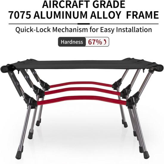 Unser tragbares Klappbett für Katastrophenhilfe besteht aus einer Aluminiumlegierung 7075 in Flugzeugqualität. Dieses hochwertige Metall sorgt für Stabilität und ist aus China im Großhandel erhältlich. Die Gesamtgröße des leichten Klappbetts für Katastrophenhilfe beträgt 190 x 65 x 40 cm und wiegt nur 2,2 kg. Die Bettoberfläche besteht aus atmungsaktivem und reißfestem 600D Oxford-Gewebe, das für hohen Komfort und Langlebigkeit sorgt.