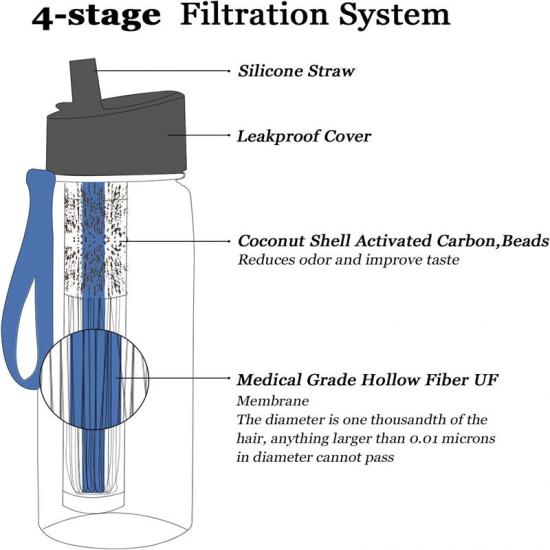Die Verwendung dieses 9,2 x 2,9 Zoll großen Wasserreinigers für den zivilen Notfall ist kinderleicht. Spülen Sie beim ersten Gebrauch einfach den Kohlefilter aus und saugen Sie 4-5 Mal daran, damit das Wasser durch den Filter steigt. Schon kann es losgehen. Für die weitere Verwendung folgen Sie einfach der normalen Bedienung und genießen Sie jederzeit und überall reines Trinkwasser.