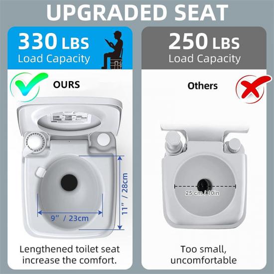 Dieser verbesserte Toilettensitz ist aus langlebigen und wasserdichten Materialien gefertigt, um sicherzustellen, dass seine Konstruktion und Farbe in allen Umgebungen lange halten. Die Abmessungen der Zivilhilfstoiletten wurden sorgfältig mit größeren und größeren Breiten und Längen entworfen, um ein geräumigeres und komfortableres Toilettenerlebnis zu bieten. Auch die Sitzhöhe der Toilette wurde angepasst, um den unterschiedlichen Bedürfnissen gerecht zu werden. Die genauen Abmessungen betragen 16,1 x 13,8 x 16,1 Zoll/41 x 35 x 41 cm und sind für verschiedene Verwendungsszenarien geeignet.