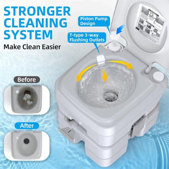 Das größte Highlight dieser Civilian Relief Durable Toilette ist ihr leistungsstarkes Reinigungssystem. Im Vergleich zur herkömmlichen Balgpumpe sorgt die verbesserte Kolbenpumpe für einen stärkeren Wasserfluss und sorgt so dafür, dass das Innere der Toilette in alle Richtungen gereinigt wird. Das T-förmige, vollflächige Ausgussdesign verstärkt die Reinigungswirkung und erleichtert die Reinigung aller Teile der Innenwand der Toilette.