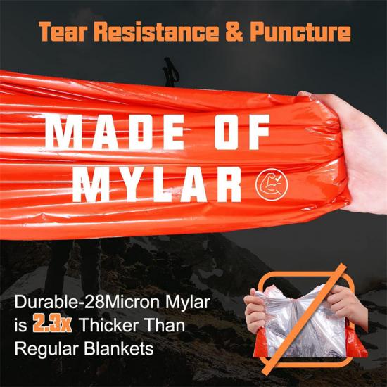 Es besteht aus strapazierfähigem 28-Mikron-Mylaris und ist leicht, zuverlässig, wasserdicht und warm für den Einsatz unter extremen Bedingungen.