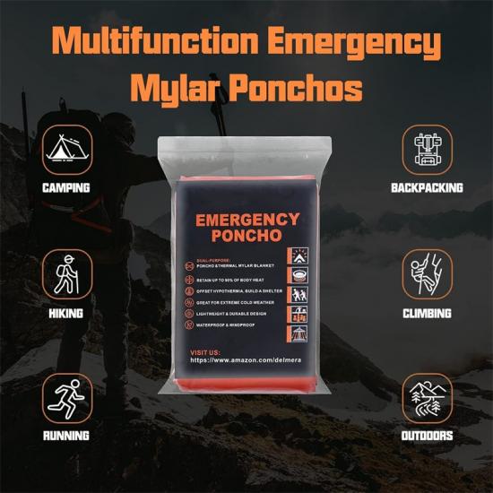 Darüber hinaus bietet dieser Notfall-Regenmantel für die zivile Katastrophenhilfe hervorragende Tragbarkeit und Haltbarkeit. Dank seines leichten Designs lässt er sich leicht tragen, ohne den Benutzer zusätzlich zu belasten. Gleichzeitig sorgt das strapazierfähige, aluminisierte PE-Innenmaterial dafür, dass der Schlafsack hervorragend regen- und winddicht ist und Ihnen auch bei stürmischem Wetter einen warmen Schutz bietet.