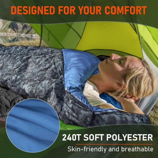 Spüren Sie den Unterschied - Der superkomfortable, leichte Outdoor-Camping-Überlebensschlafsack von YRF wurde entwickelt, um sicherzustellen, dass Sie nach einem anstrengenden Tag beim Trekking, Wandern, Reisen oder anderen Erkundungen eine gute und erholsame Nachtruhe genießen können. Das Roll Control Design macht das Zusammenfalten schnell und einfach. Zwei zusammenzippen für doppelten Platz.