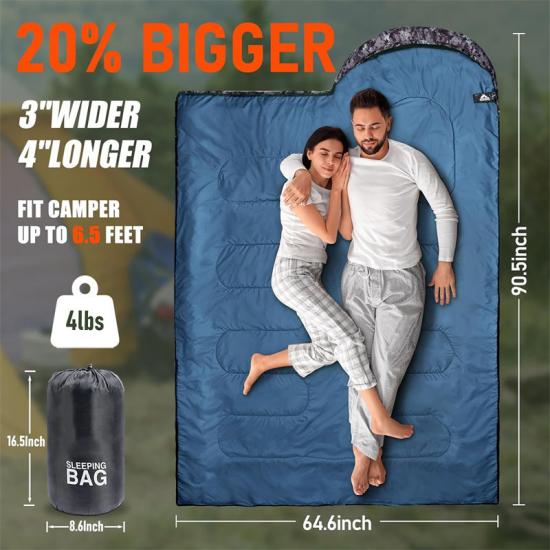 Die Abmessungen des Militärschlafsacks (238 x 82 cm) bieten einer einzelnen Person ausreichend Platz, um auch bei kaltem Wetter warm zu bleiben. Dank des dicken Materials und des ausreichenden Fassungsvermögens wiegt er nur 2 kg. Die beiden Einzelschlafsäcke werden mit zwei 183 x 56 cm großen Memory-Schaum-Isomatten für ein warmes und komfortables Schlaferlebnis geliefert. Zusätzlich wird dieser Militärschlafsack mit Kompressionssack und Gummiband geliefert, das sich für einfache Lagerung und Transport komprimieren lässt.
