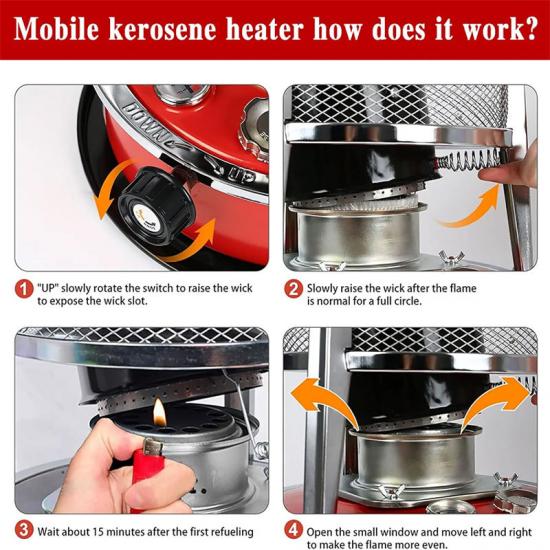 Petroleumofen-Heizung Notdienst-Funktionalität: Dieser Not-Petroleumofen bietet kontinuierliche Wärme und verfügt über mehrere Schutzfunktionen wie einen eingebauten Flammenregler, einen versiegelten Tankdeckel und ein Sicherheitsgitter für eine sichere Nutzung und eine langlebige Wärmequelle. Eine Tankanzeige, die den Kraftstoffstand in Echtzeit überwacht, und ein abnehmbares, ungiftiges Emaille-Design auf der Oberseite machen Wartung und Reinigung einfach und bequem. Leise, energieeffiziente und saubere Funktionen ermöglichen es Benutzern, die Wärme hautnah zu genießen, ohne sich um Energieverbrauch oder Umweltverschmutzung sorgen zu müssen.