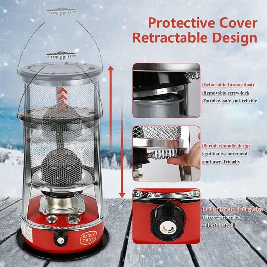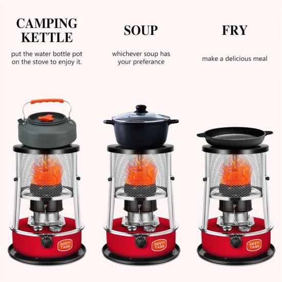 Komfort und Vielseitigkeit: Hohe Funktionalität und Tragekomfort zeichnen diesen Petroleumofen aus. Dank der höhenverstellbaren Haube lässt sich die Wärme je nach Bedarf regulieren und so das Kochen beschleunigen. Dank des leichten Griffs lässt er sich leicht tragen und transportieren, sodass Sie die wohlige Wärme sowohl drinnen als auch draußen genießen können. Dank seines multifunktionalen Designs kann er nicht nur heizen, sondern auch kochen, kochen und sogar grillen und erfüllt so alle Ihre Anforderungen für Indoor- und Outdoor-Aktivitäten im Winter.