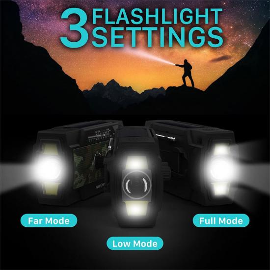 Multifunktionales Radio-Notfallprodukt: Dank des integrierten NOAA-Notfallwetterradiozugangs können Sie sich darauf verlassen, aktuelle Notfallwettervorhersagen und Nachrichtensendungen von NOAA und anderen AM/FM-Sendern zu erhalten. So haben Sie rechtzeitig Zugriff auf wichtige Informationen, um fundierte Notfallentscheidungen treffen zu können.