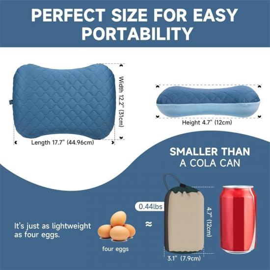 Der Innenairbag des praktischen aufblasbaren Notfallkissens ist mit einem äußerst strapazierfähigen elastischen Polyestergewebe überzogen, um Luftlecks effektiv zu verhindern. Das zusätzliche abnehmbare Gummiband sorgt dafür, dass sich das aufblasbare Kissen während des Gebrauchs nicht bewegt und bietet stabilen Halt.