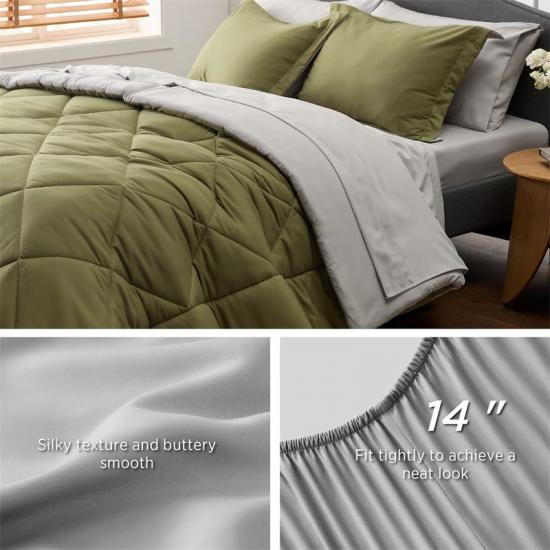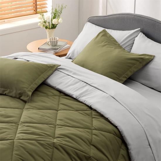 Eines der Highlights dieses erschwinglichen Notfall-Bettlakens ist sein doppelseitiges Design. Sie können Bettdecke und Tagesdecke einfach wenden und so verschiedene Stile und Farben nach Ihren Wünschen und Bedürfnissen wählen. Das Design des Kissenbezugs ist nicht nur schön und großzügig, sondern sorgt auch für die Sicherheit des Kissens. Die Rautensteppung verhindert effektiv das Verrutschen der Füllung und sorgt für einen sichereren Schlaf.