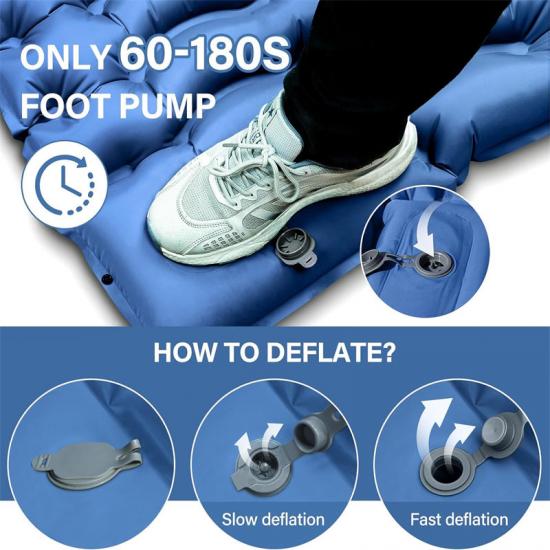 Die Aufblaszeit der aufblasbaren Notfall-Isomatte aus Nylon hängt von der Trittgeschwindigkeit und der Festigkeit der Luftmatratze ab