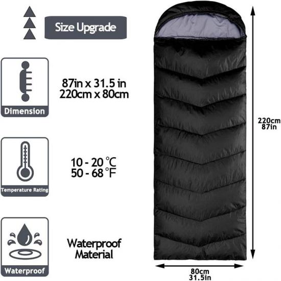 Ein hochwertiger Schlafsack aus atmungsaktivem und weichem Polyester-Pongee, konzipiert für Outdoor-Aktivitäten und Camping. Er ist wasser- und winddicht und sorgt für einen komfortablen und sicheren Schlaf bei jedem Outdoor-Abenteuer.