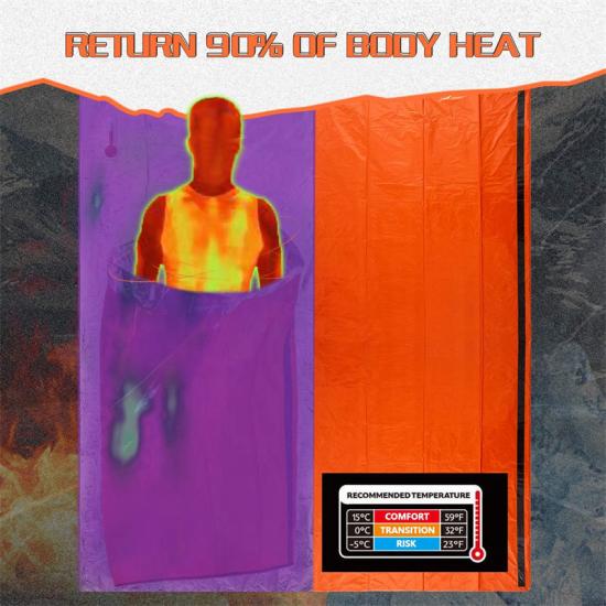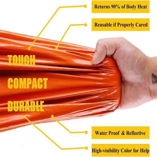 Hergestellt aus ultraleichtem PE-Material für 24-Stunden-Wärme und in einer Farbe, die es für Rettungskräfte leicht zu finden macht, ist dies ein unverzichtbares Überlebenswerkzeug.