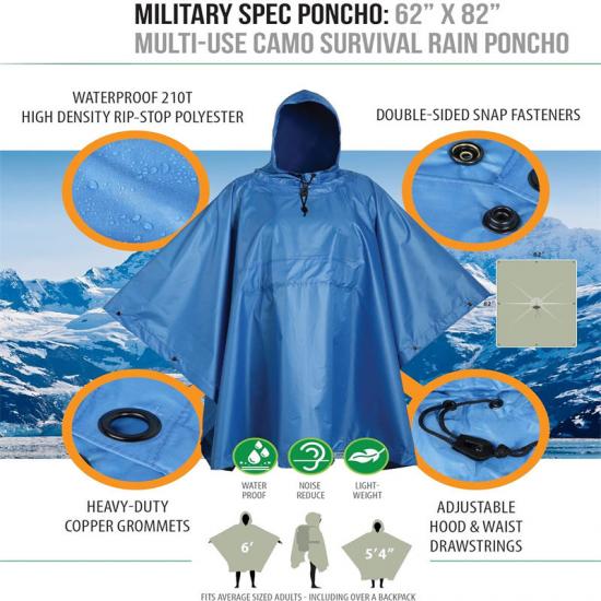 Poncho-Liner-Reserve für Regen, geeignet für Katastrophenhilfe, Militär, Spendenhilfe, Projekttechnik, Verwendung von staatlichen Reservematerialien
