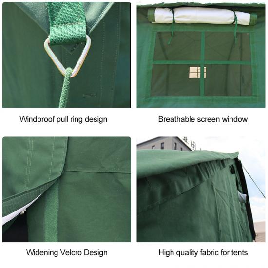 Dieses grüne Regierungszelt von YRF ist für den Außeneinsatz, den Notfalleinsatz und den Bürobedarf der Regierung konzipiert. Es ist 4000 mm regendicht, reißfest und verfügt über einen stabilen Aluminiumrahmen, der einen zuverlässigen Arbeitsraum bietet.