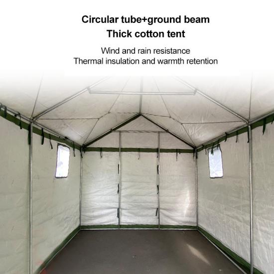 Mit seiner wetterfesten Funktion kann es den Katastrophenopfern und Rettungskräften bei schlechtem Wetter Schutz bieten und den Innenraum warm halten und in der kalten Umgebung ein angenehmes Wohnklima bieten. |