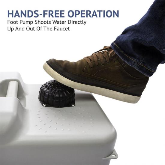 Ausgestattet mit einem großen Aufsatzwaschbecken und einem 19-Liter-Wassertank ermöglicht dieses in China hergestellte Notfall-Handwaschbecken für den Außenbereich mit einer einzigen Füllung über 100 Handwäschen. Die Fußpumpe sprüht manuell 180 ml Frischwasser durch den Wasserhahn, ohne dass eine Zweihandbedienung erforderlich ist. Das ist praktisch und hygienisch sowie umweltfreundlich und energiesparend.
