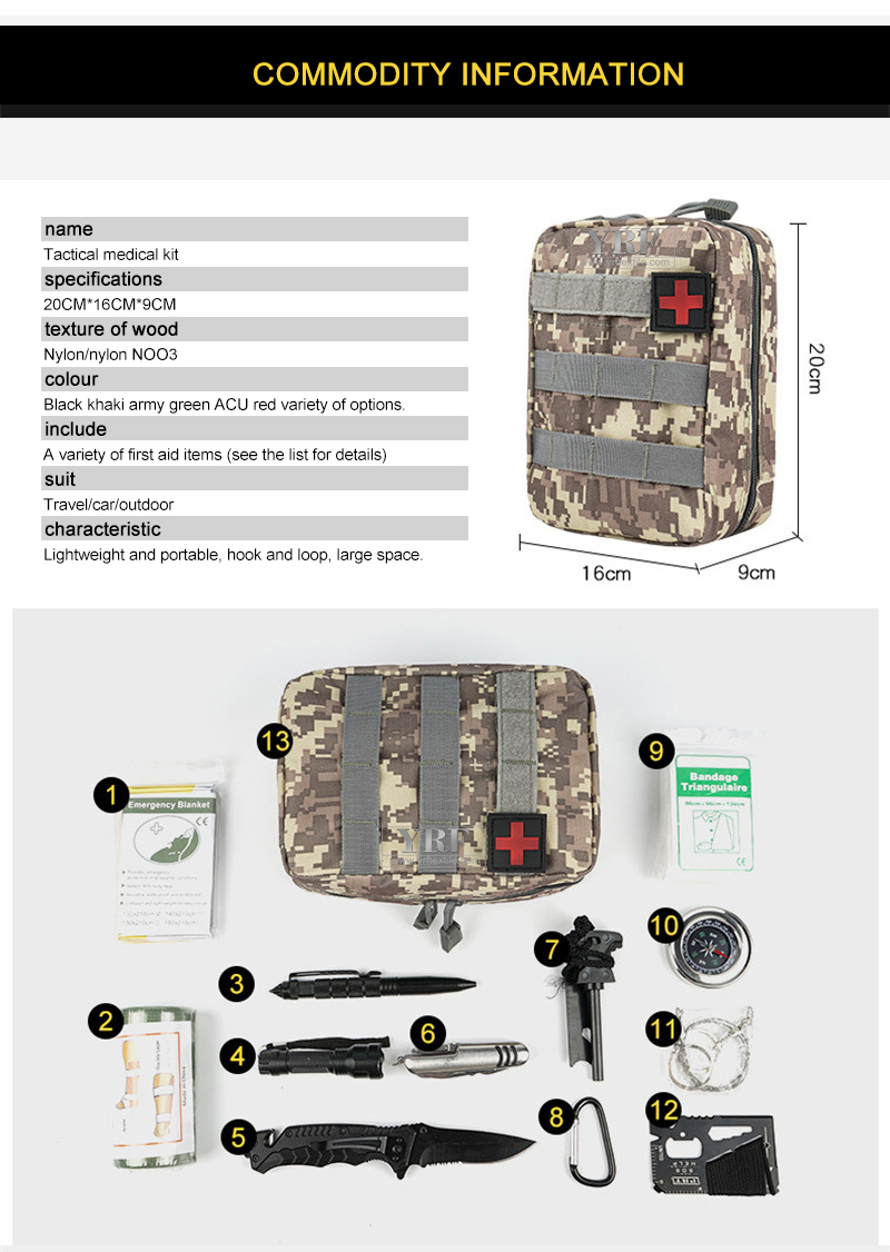 Das komfortable Design eignet sich perfekt für alle Anwendungen und zum Tragen einer Vielzahl von Werkzeugen und Geräten. Sie werden feststellen, dass die YRF Outdoor Camping Emergency Kits Tactical First Aid, was auch immer Sie tragen möchten,
