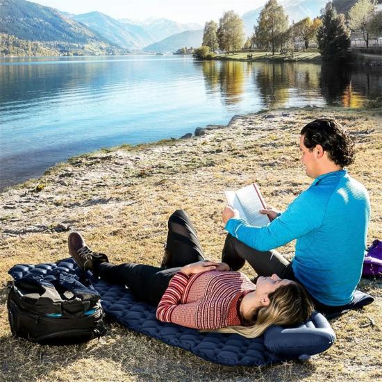 Unsere aufblasbare Isomatte für den Außenbereich besteht aus hochwertigem Material mit wasserdichter, waschbarer und reißfester