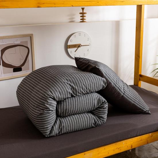 frönen In einen erholsamen Schlaf. Wundern Sie sich nicht, wenn Sie Ihren Wecker verschlafen. Unser gestreiftes Bettwäsche-Set Versprechen