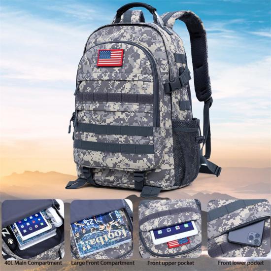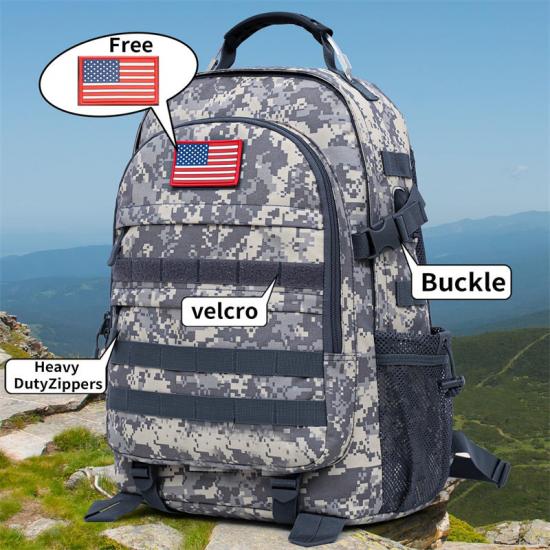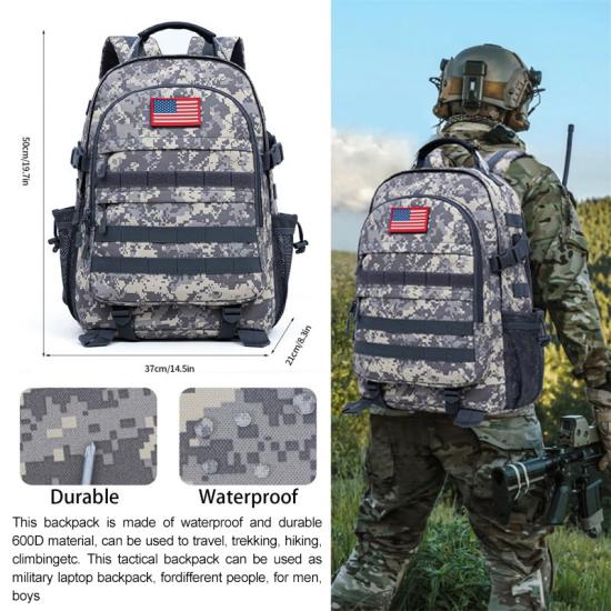 Der Militärrucksack ist robust, leicht, langlebig und wasserdicht und verfügt über reißfeste Eigenschaften, sodass er sich perfekt für jedes Abenteuer eignet. Der Rucksack besteht aus hochwertigen Materialien, die rauen Umgebungen und starker Beanspruchung standhalten.