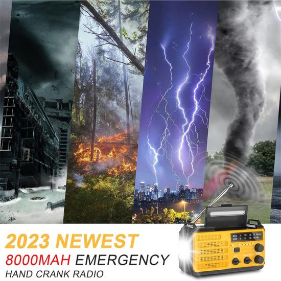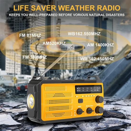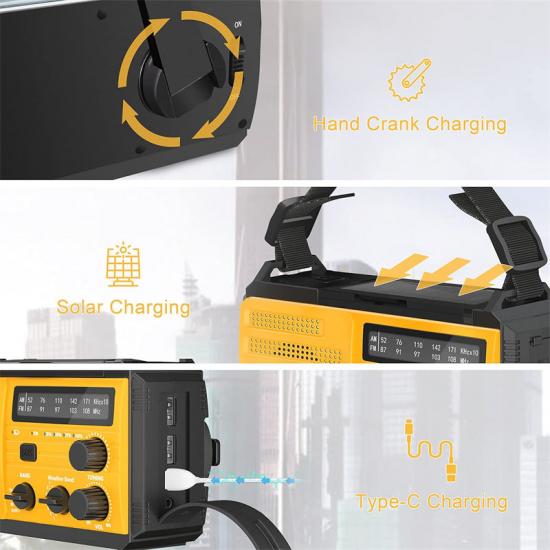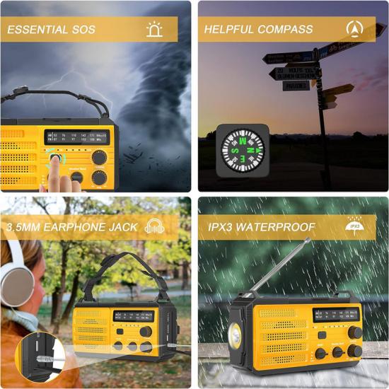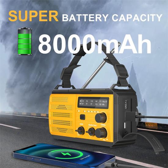 Wohltätigkeitsradio mit 8000 mAh Akku, tragbar, WetterübertragungenDieses Gerät ist ein wertvolles Hilfsmittel für die Hilfeleistung und Unterstützung in Hochwassergebieten.