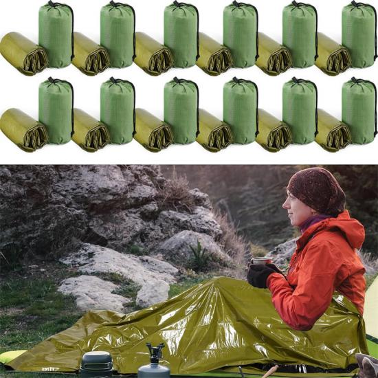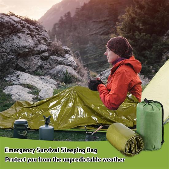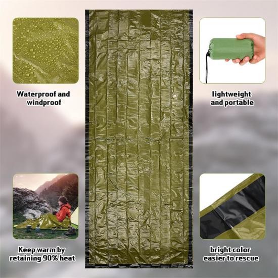 Unser Survival-Schlafsack aus verschleißfestem Government Reserves ist die ideale Wahl für Outdoor-Aktivitäten und bietet Entdeckern und Camping-Fans eine sichere und komfortable Ruheumgebung. Dieser Schlafsack besteht aus hochwertiger PE- und Aluminiumfolie, die sich durch hervorragende Haltbarkeit sowie Reiß- und Durchstoßfestigkeit auszeichnet. Sein einzigartiges Beschichtungsdesign reflektiert 90 % der Körperwärme und sorgt dafür, dass Sie in jedem Klima warm bleiben.