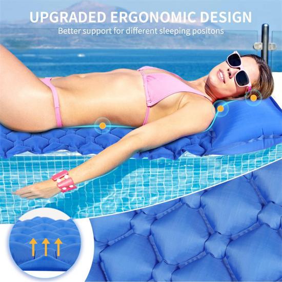 Das ergonomische Design der aufblasbaren Militär-Isomatte, ausgestattet mit einem einteiligen Kissen, das sich den Kurven anpasst
