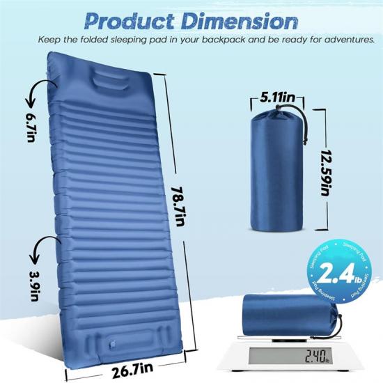 Die multifunktionale aufblasbare Isomatte misst im aufgeblasenen Zustand 78,7 x 26,7 x 3,9 Zoll/200 x 68 x 10 cm.
