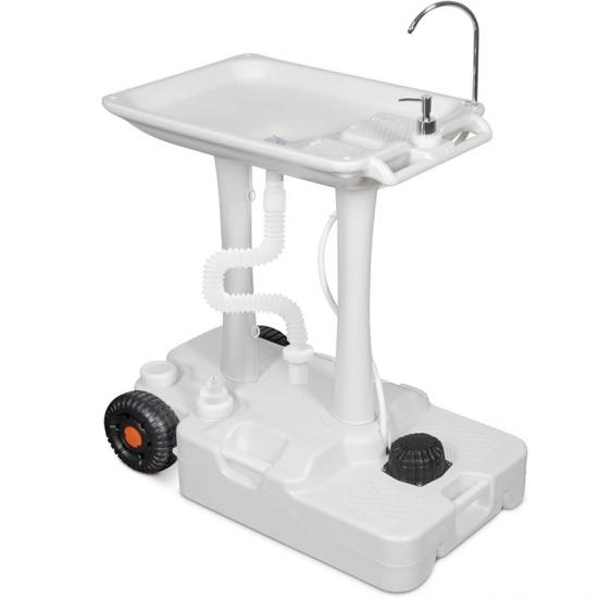A: Das Handwaschbecken verfügt über einen extra großen 1,3-Gallonen-Seifenspender und einen eingebauten 7-Gallonen-Frischwassertank. Das praktische Handwaschbecken von Emergency Product lässt sich außerdem schnell montieren und sorgt so für mehr Effizienz.
