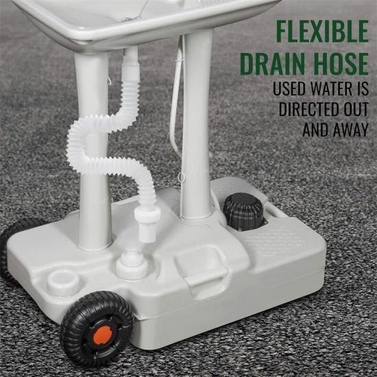 Frischwassertank: Die wasserdichten Nothandwaschbecken verfügen über einen eingebauten 7-Gallonen-Frischwassertank, um sicherzustellen, dass grundlegende Reinigungsaufgaben ohne Wasserquelle durchgeführt werden können.