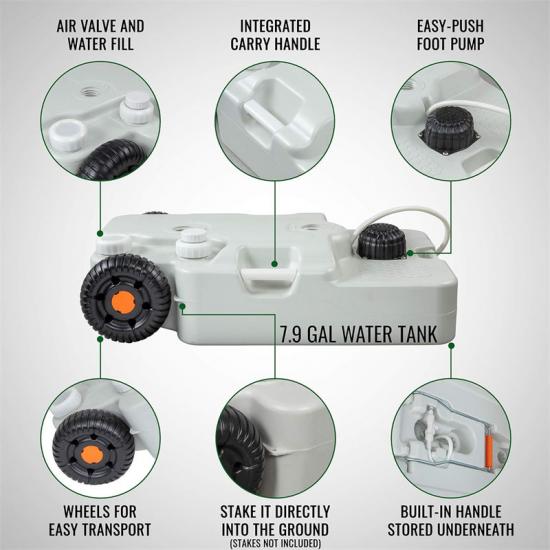 Extra großer Flüssigseifenspender (1,3 Gallonen), 7 Gallonen Frischwassertank, Integrierter Tragegriff mit Rädern |