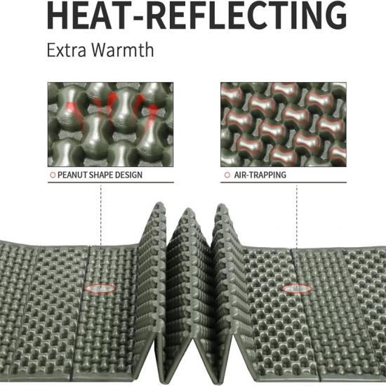 Bequemer Schlaf ist Ihnen wichtig. Daher besteht diese tragbare, günstige Online-Isomatte aus hochwertigem, leichtem IXPE-Schaumstoff, der sich weich und angenehm anfühlt. Der geschlossenzellige Schaumstoff ist ergonomisch geformt und bietet umfassenden Halt und Komfort, sodass Sie in jeder Umgebung eine erholsame Nachtruhe genießen können.
