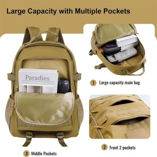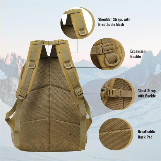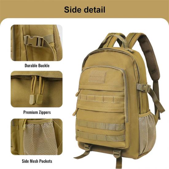 Der Militärrucksack ist robust, leicht, langlebig und wasserdicht und verfügt über reißfeste Eigenschaften, sodass er sich perfekt für jedes Abenteuer eignet. Der Rucksack besteht aus hochwertigen Materialien, die rauen Umgebungen und starker Beanspruchung standhalten.