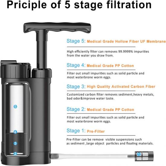 Zusammenfassend lässt sich sagen, dass dieser 5,7 x 3 Zoll große Polizei-Wasserreiniger mit 5-stufigem Filtersystem nicht nur eine effiziente Wasseraufbereitung bietet, sondern auch durch seine Tragbarkeit und Haltbarkeit den strengen Anforderungen verschiedener Notfallsituationen gerecht wird. Egal in welcher Umgebung Sie sich befinden, er ist ein wichtiges Gerät zur Gewährleistung von sicherem Trinkwasser.