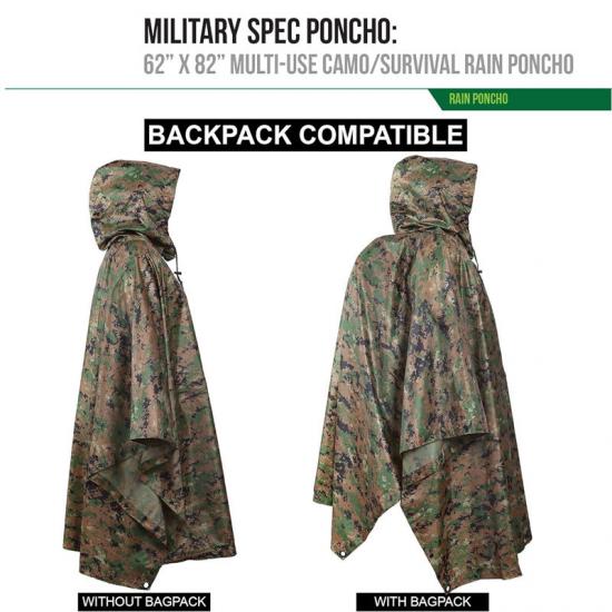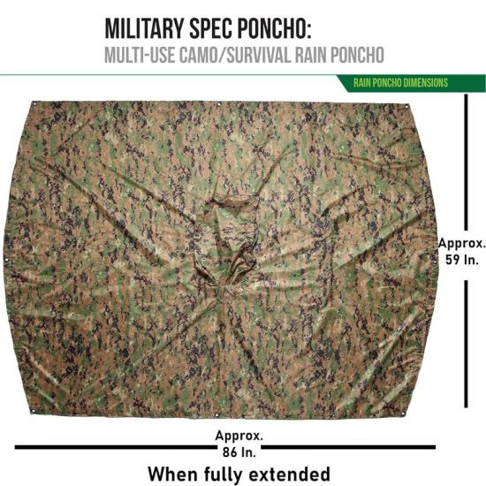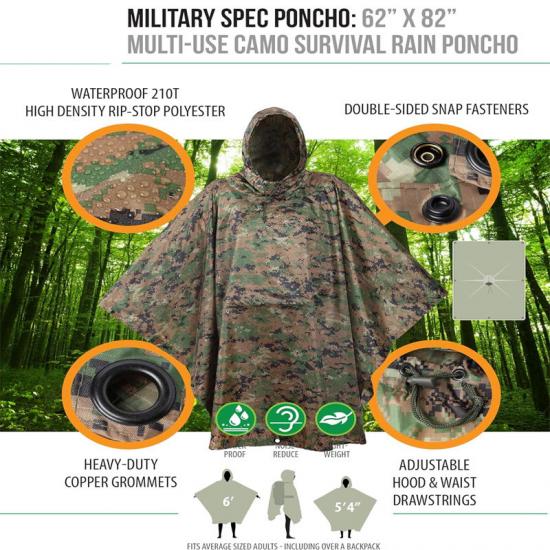 Zweitens bietet die Isolierung des Regenponcho-Innenfutters in militärischen Einsatzszenarien nicht nur Schutz vor Regen, sondern kann auch als Tarnwerkzeug verwendet werden. Sein hochdichtes, mit Ripstop-Polyester und Polyurethan beschichtetes Gewebe bietet hervorragende Wasserdichtigkeit und reduziert gleichzeitig Reibung und störende Geräusche. Da der Poncho leicht zu tragen und verstellbar ist, eignet er sich auch ideal für taktische Einsätze.