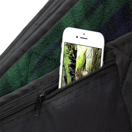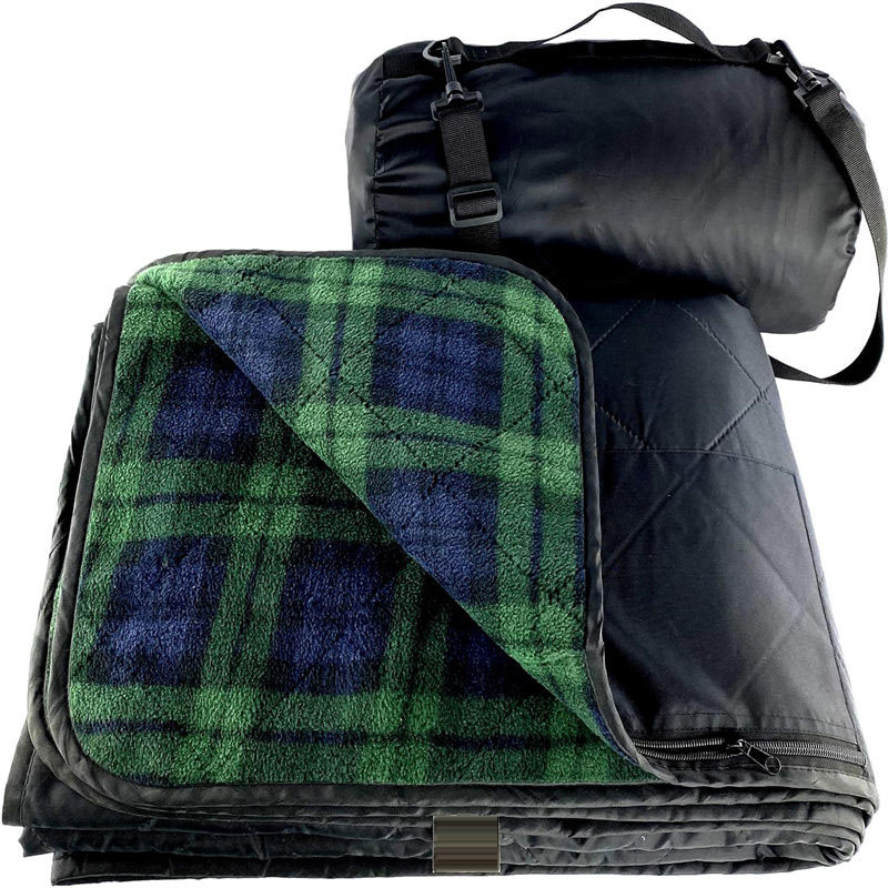 Regenschutzdecke Wärme Material: Unsere Polyester-Schlafdecken bestehen aus einem weichen und kuscheligen grünen 350-GSM-Antipilling-Fleece und die Vorderseite ist aus diesem Material gefertigt, das für ein optimales Tragegefühl sorgt. Die Rückseite ist robuster und besteht aus einem schwarzen wasser- und winddichten Polyestermaterial, um der Plüschdecke zusätzliche Haltbarkeit zu verleihen.