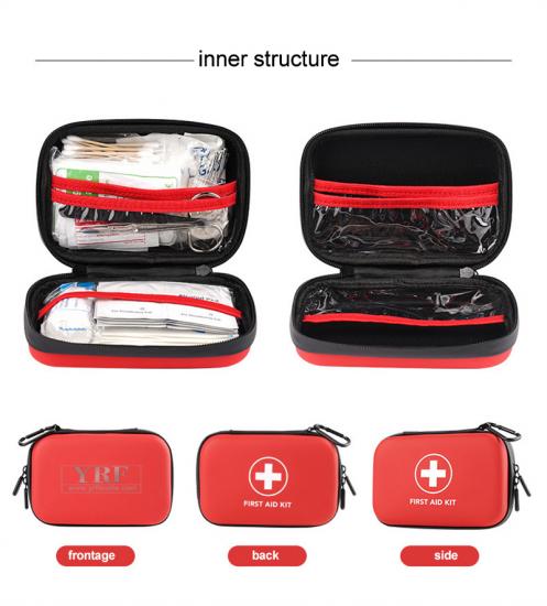 Alkoholtabletten * 10, Tabletten gegen Juckreiz * 10, Tourniquet * 1, Nadel * 1, PBT-Verband * 1, Schere * 1, Wattestäbchen * 10, Klebeband * 1, Augenpads * 2, Sterile Mullkompressen * 4, Benutzerhandbuch * 1, Pinzette * 1, Dreiecksverband * 1, Jodophortabletten * 10, Wasserfester Verband * 20, EVA-Verpackung * 1