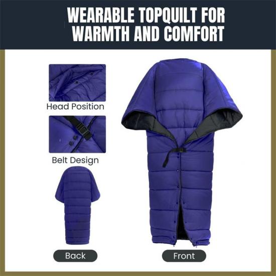 Der leichte Schlafsack von Equipment kann als tragbarer, warmer, leichter Poncho und als zusätzliche isolierende Außenschicht beim Ausruhen in der Nähe des Lagers oder in der kalten Winterwildnis verwendet werden.