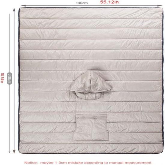 A: Die Vielseitigkeit des Schlafsacks aus 100 % Polyester ermöglicht die Verwendung als Schlafsack, Schal, kleine Steppdecke oder isolierender Umhang in einem Zelt sowie als Bodendecke, Schlafsack,