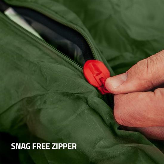 Die hochwertigen doppelseitigen Reißverschlüsse ohne Haken sind äußerst angenehm zu bedienen. Durch das Hochziehen des Kordelzugs an der Kissenauflage bleibt der Schlafsack näher an Ihrem Kopf und sorgt für zusätzliche Wärme bei kälterem Wetter. Zusätzliche Klettverschlüsse sorgen für ein angenehmes Tragegefühl, ohne dass sich der Reißverschluss unerwartet bewegt.