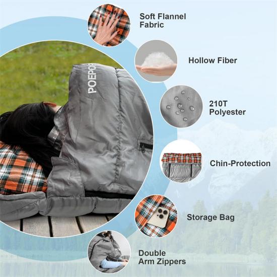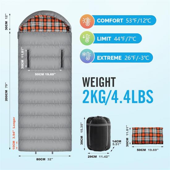 Unser wasserdichter Schlafsack (200+30)*81 cm besteht aus hochwertigem, wasserdicht beschichtetem 210T Polyester-Karogewebe. Das Außenmaterial ist spritzwassergeschützt und hält Sie auch bei rauen Wetterbedingungen trocken. Das Innenmaterial besteht aus einem weichen und kuscheligen Waschlappen, der auch in kalten Nächten für einen angenehmen Schlaf sorgt.