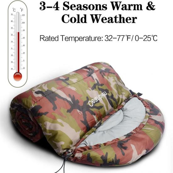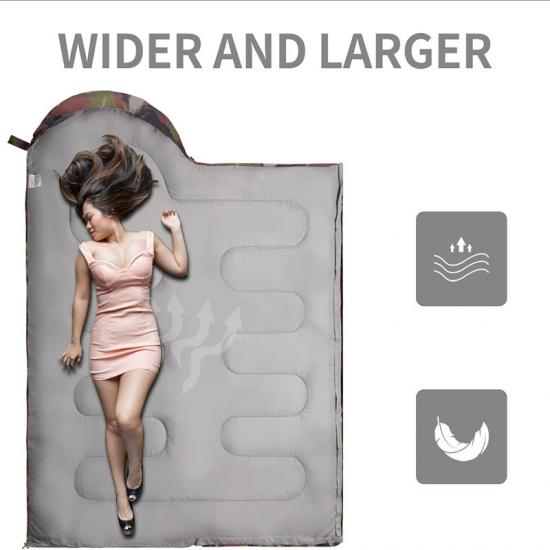 MENSCHLICHES DESIGN: Der Schlafsack ist in ein Beinreißverschlussdesign unterteilt, sodass Sie Ihre Füße bequem ausstrecken können und keine Angst vor stickiger Hitze haben. Oder schließen Sie den Reißverschluss, um es warm und bequem zu haben.
