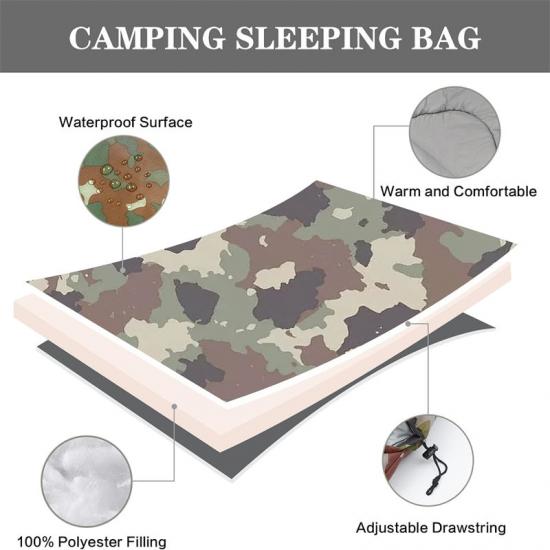 Merkmale : Der Schlafsack ist mit Mikrofaser gefüllt, ähnlich wie Daunen, mit 51 % höherer Wärmeleistung, fortschrittlichem Herstellungsverfahren, bequem und hautfreundlich.