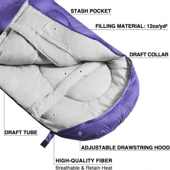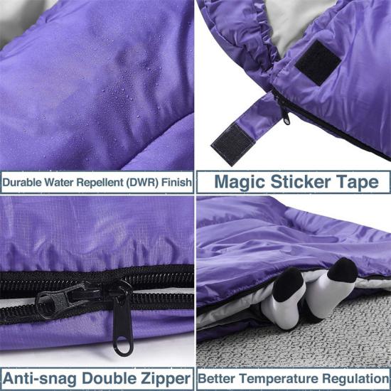 Dieser Schlafsack verfügt über eine freie Kombinations- und Demontagefunktion, die es ermöglicht, ihn für verschiedene Verwendungszwecke anzupassen.
